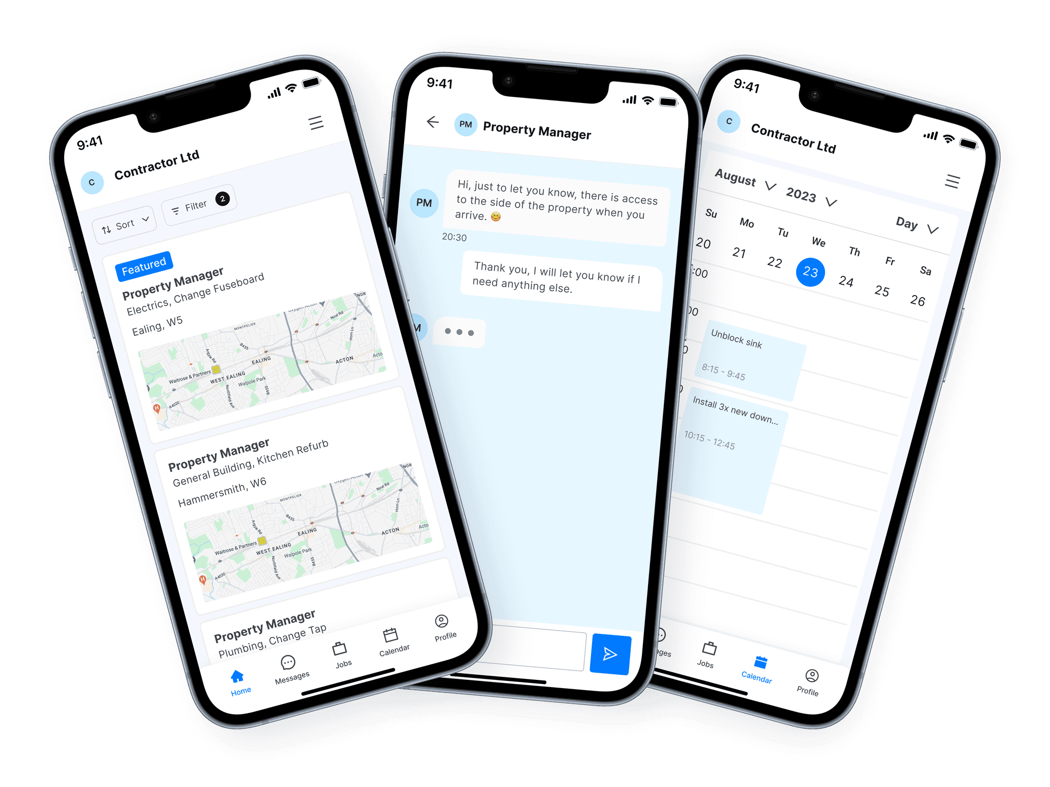 Keep everything in one place with live job updates, integrated messaging, and instant notifications.