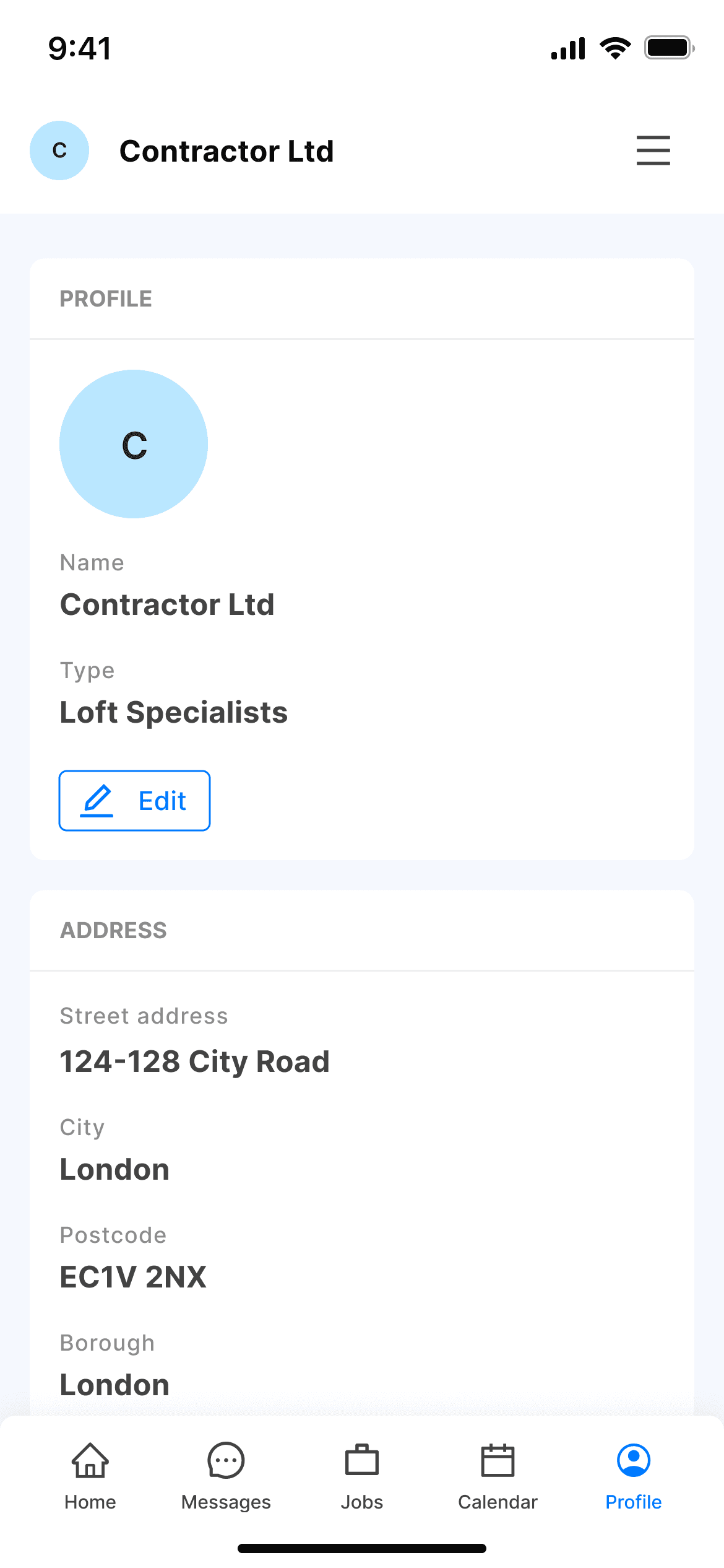 Professional Contractor Profile